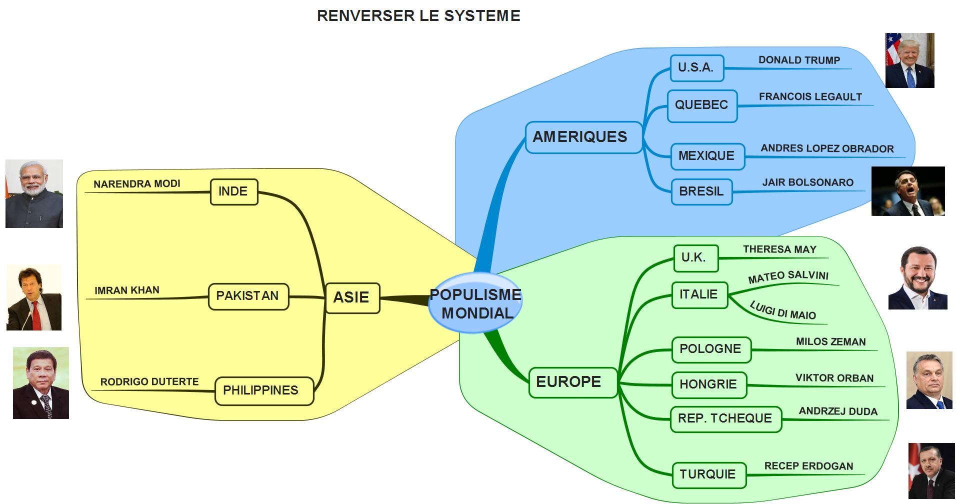 En complément de « Gilets Jaunes 2018 : Lehman Brothers 2008 ? » que j’avais publié le 17/12/18 et que de nombreux lecteurs ont déjà lu et que je remercie, on trouvera ci-dessus une Mind Map sur laquelle figurent les 13 pays touchés par ce qu’un article du Figaro international (cf. infra) qualifie de « vague du populisme ».